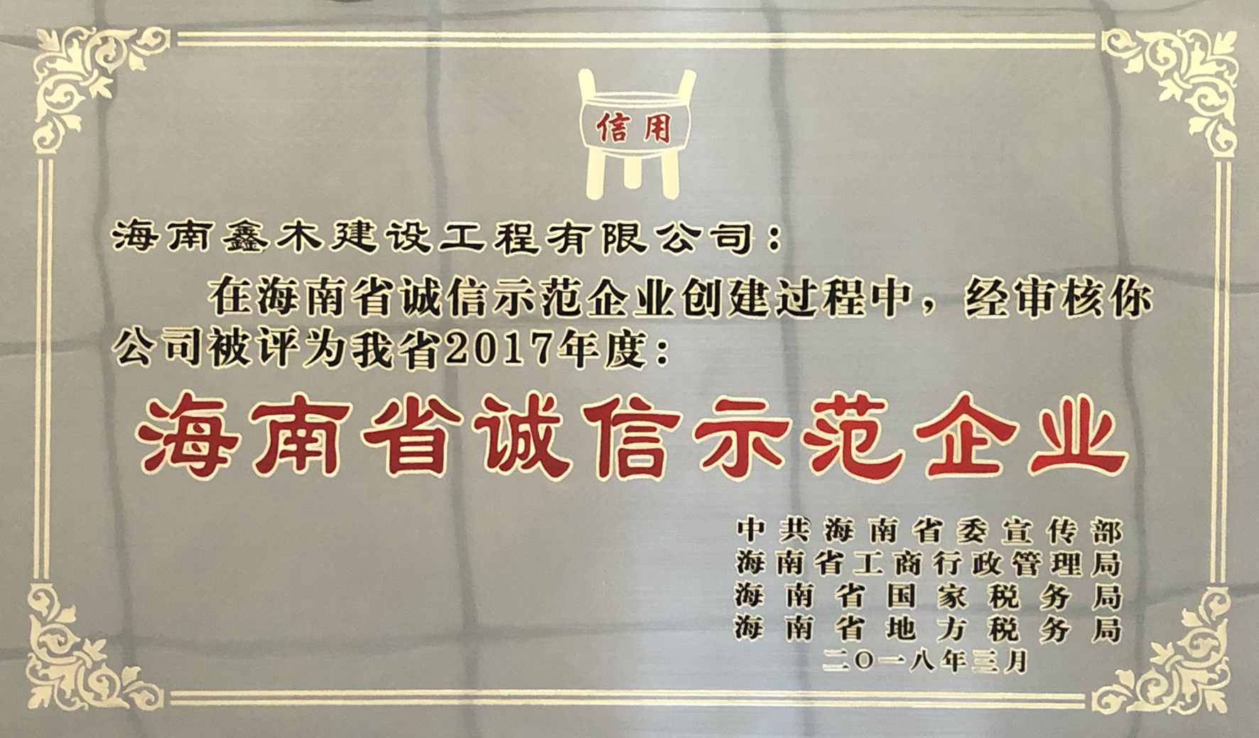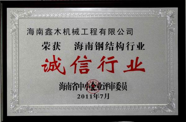 海南鑫木鋼結(jié)構(gòu)被評為海南省誠信示范企
